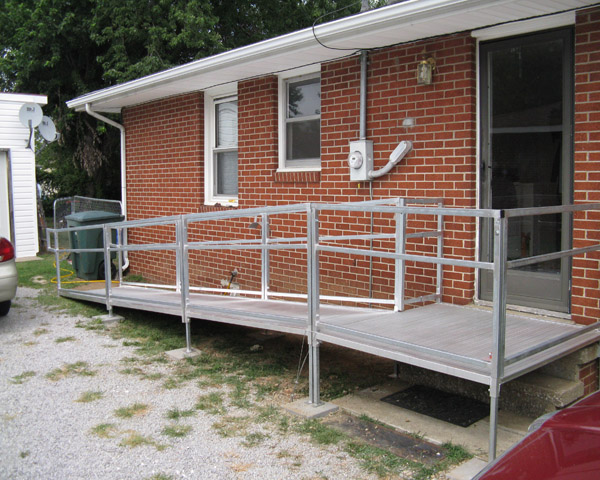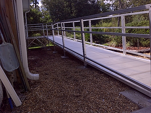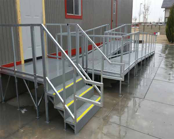 Powder coating is only available for our galvanized steel products. Get powder coating in different colors (Handrails only) to go along with battleship grey decking of ramps and landing surfaces.